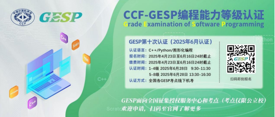 GESP第十次认证已开启报名,为让每位考生对于不同级别的考试题目和大纲有更全面的认知,详细了解历届真题的知识点,GESP技术委员会精心准备了真题解析直播栏目,于每期认证结束后进行直播。GESP第九次(2025年3月)认证真题解析将于5月6日开启直播。锁定“CCFGESP”视频号,干货满满,不容错过。